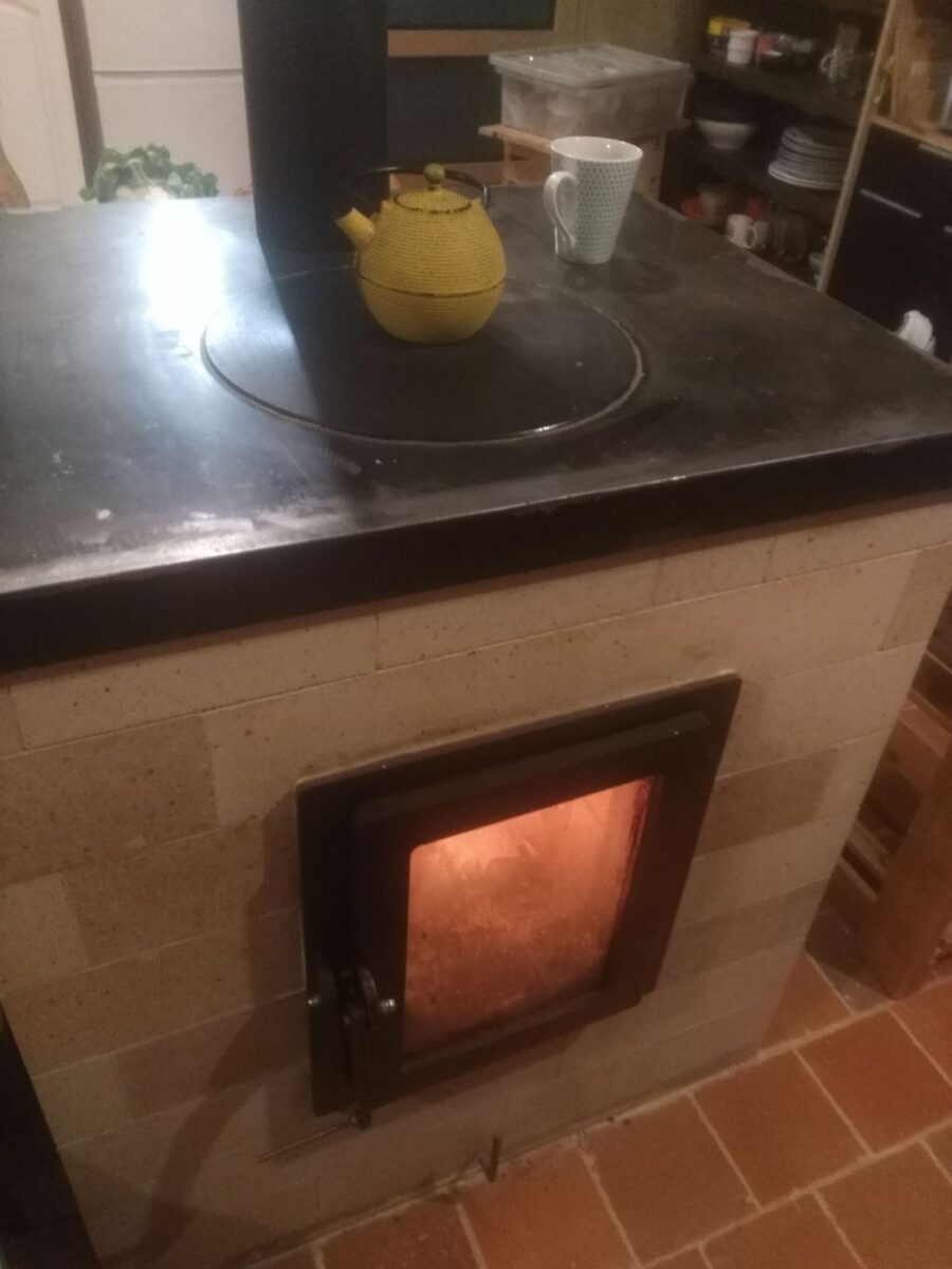 Poêle MiniMasse dans une maison en paille à Plélan le Grand (35)